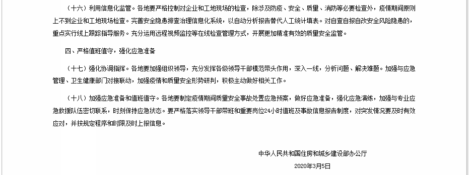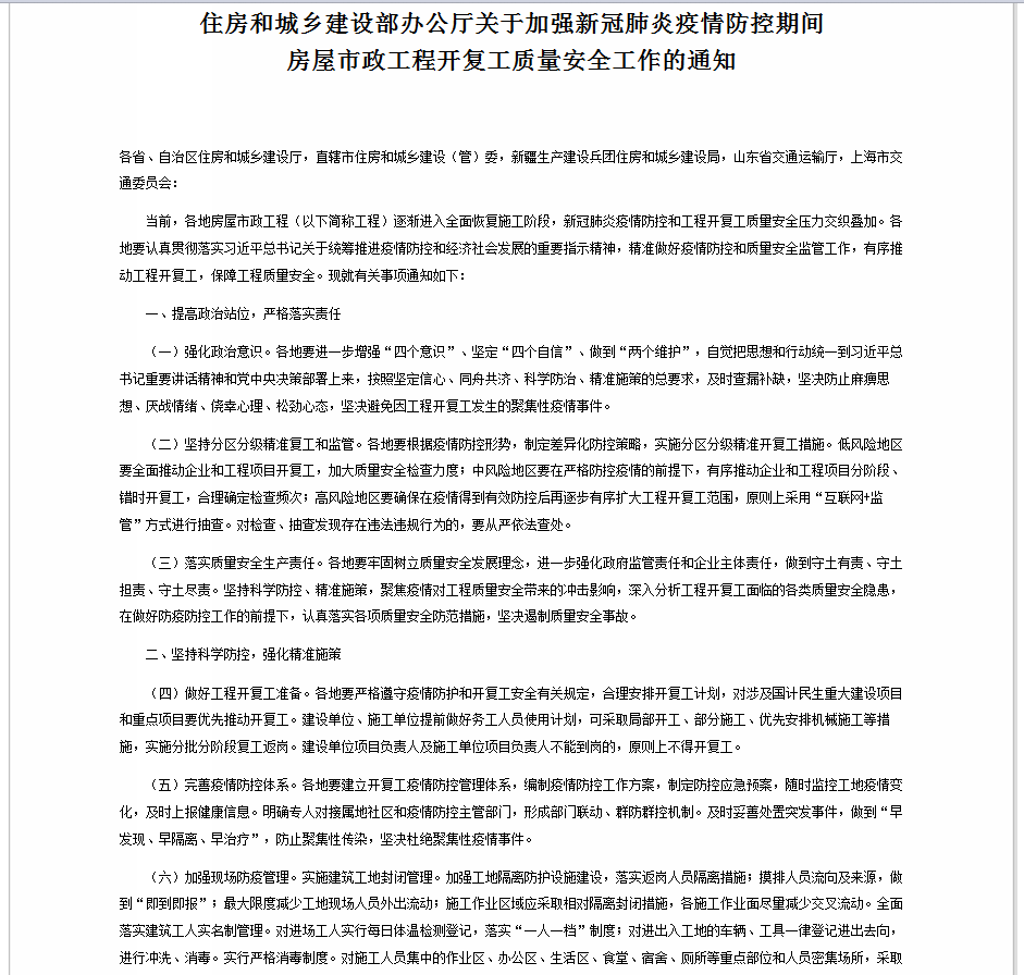 關于加強新冠肺炎疫情防控期間房屋市政工程開復工質量安全工作的通知